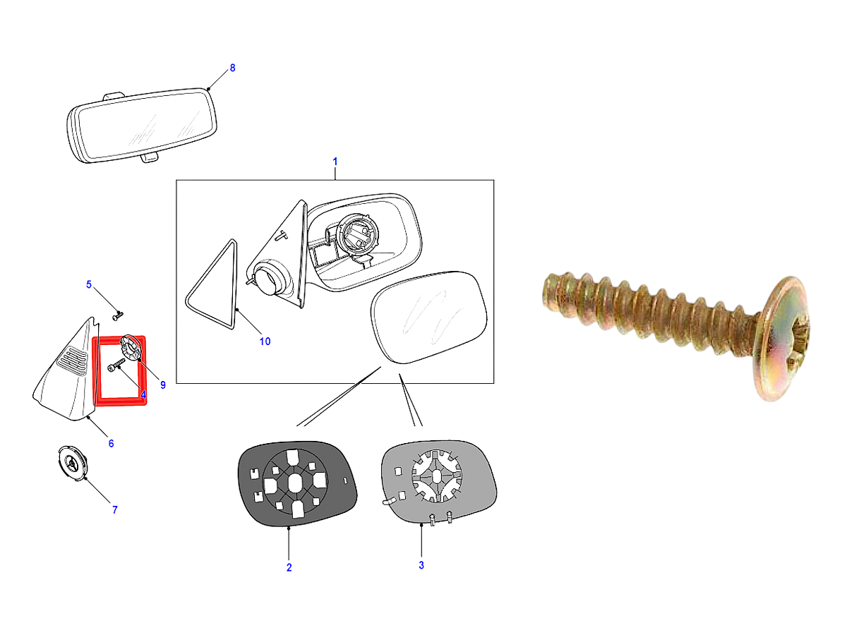 Стекло зеркала правое.