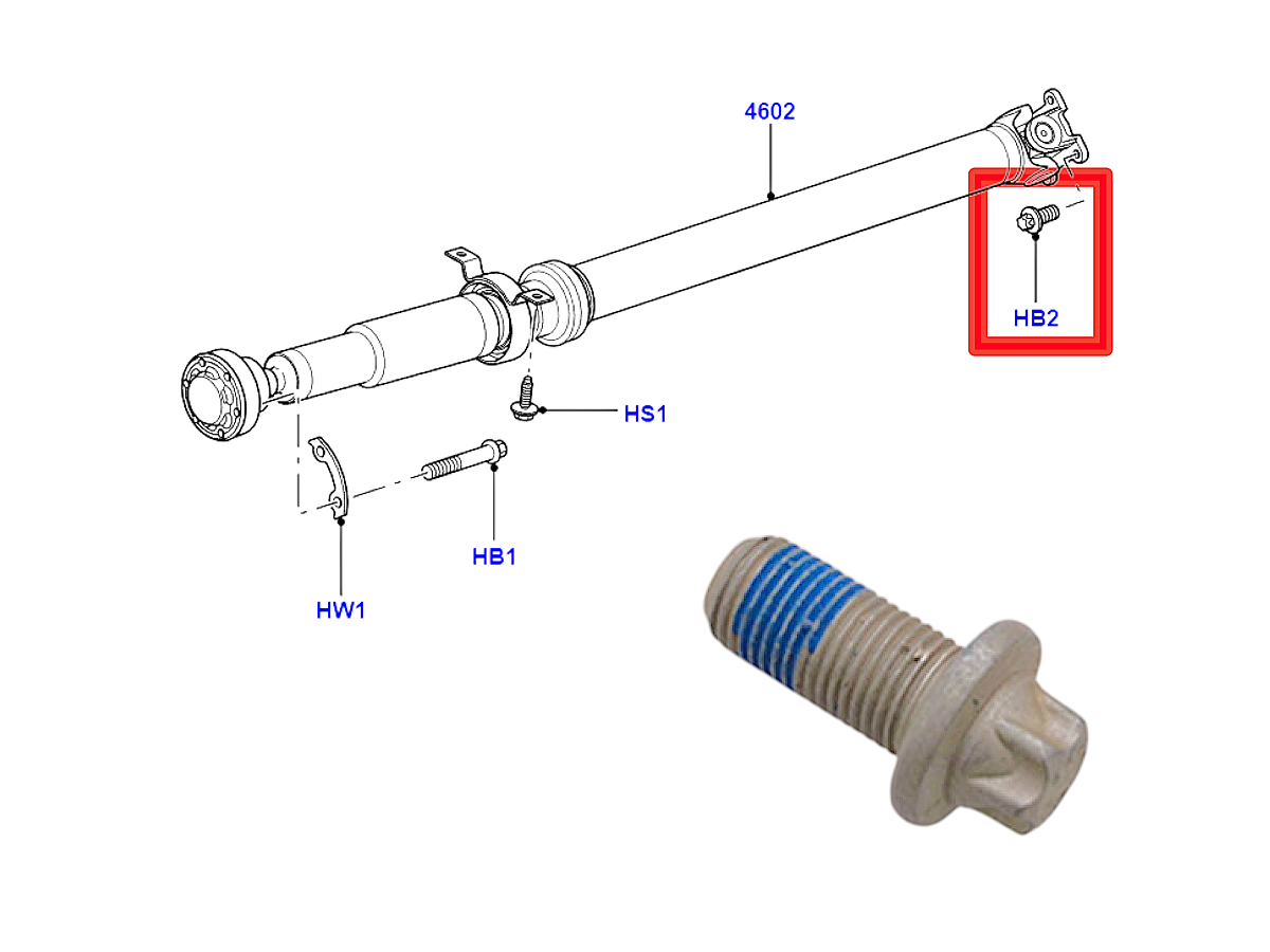 Болт крепления вала карданного заднего Land Rover Discovery 3 2005-2009, Land Rover Discovery 4 2010-2016, Land Rover Discovery 5 2017-, Range Rover 2013-2022, Range Rover Sport 2010-2022